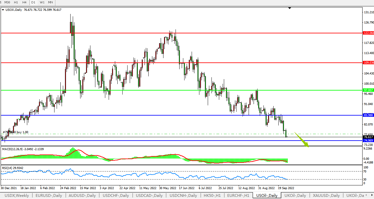 日线图看:油价继续加速下行, MACD量能柱0轴下方持续放量,RSI指标快速走强,短期油价继续大幅下挫。。
