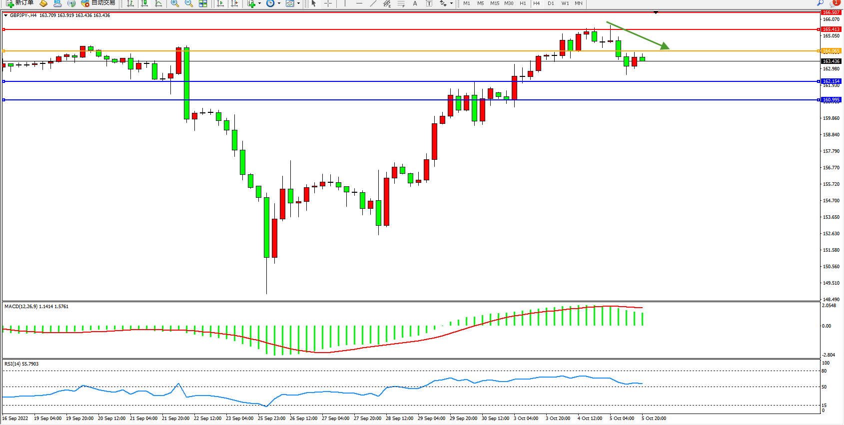 交易策略:164.065下方看跌,目标162.154、160.995