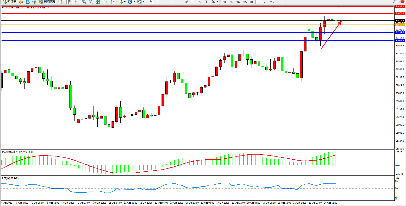 道琼斯指数10月24日(周一)收盘上涨418.05点,涨幅1.34%,报31500.61点;美国财长耶伦:在全球市场波动加剧的情况下,将密切关注美国金融行业,到目前为止,美国金融体系还没有成为经济不稳定的根源,仍然具有弹性。