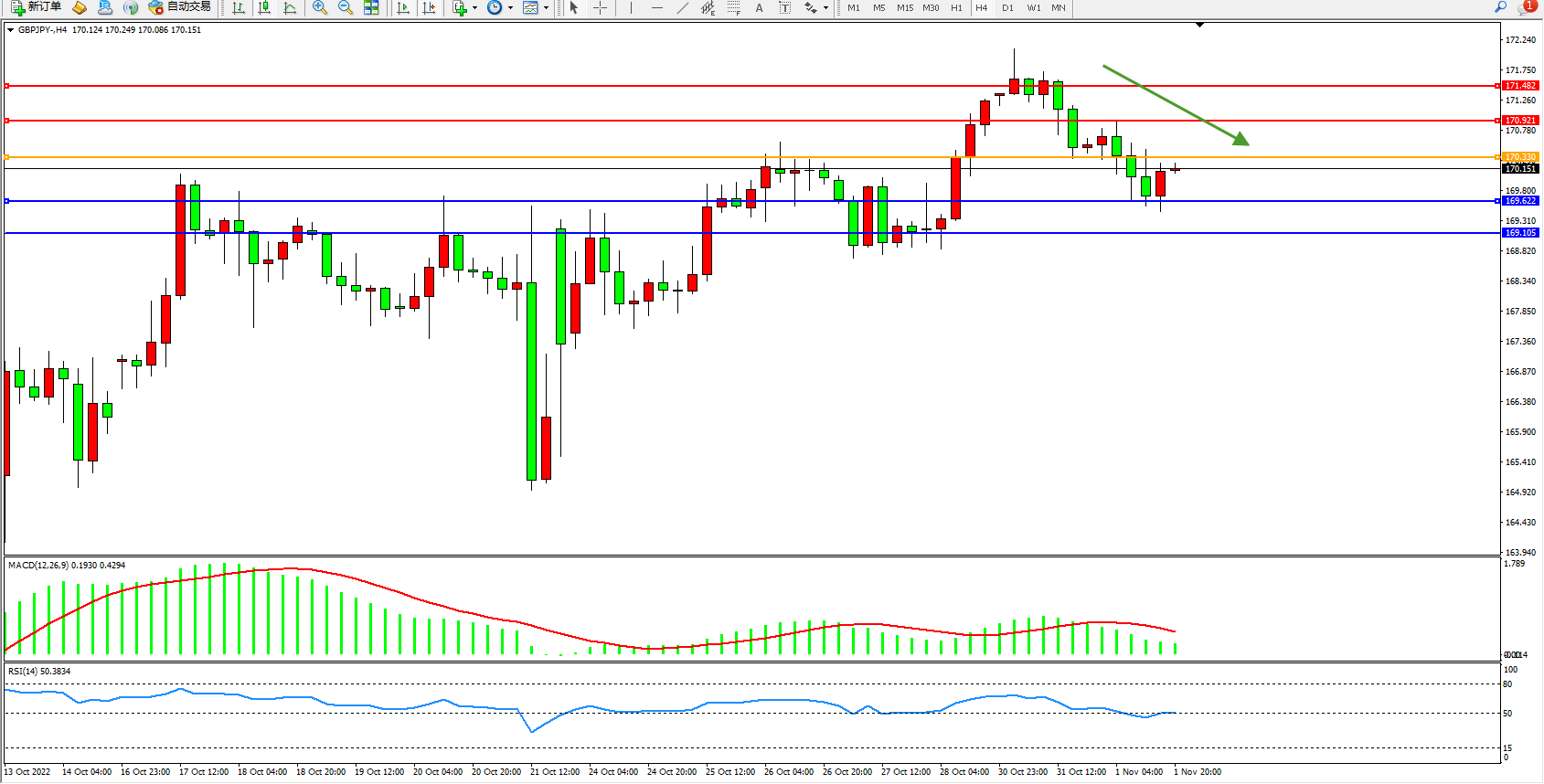 英镑兑日圆维持170.151附近震荡,英国前首相特拉斯的减税计划已经急转弯,英国仍然面临着400亿英镑(460亿美元)的预算缺口,需要通过加税以及削减开支来填补。