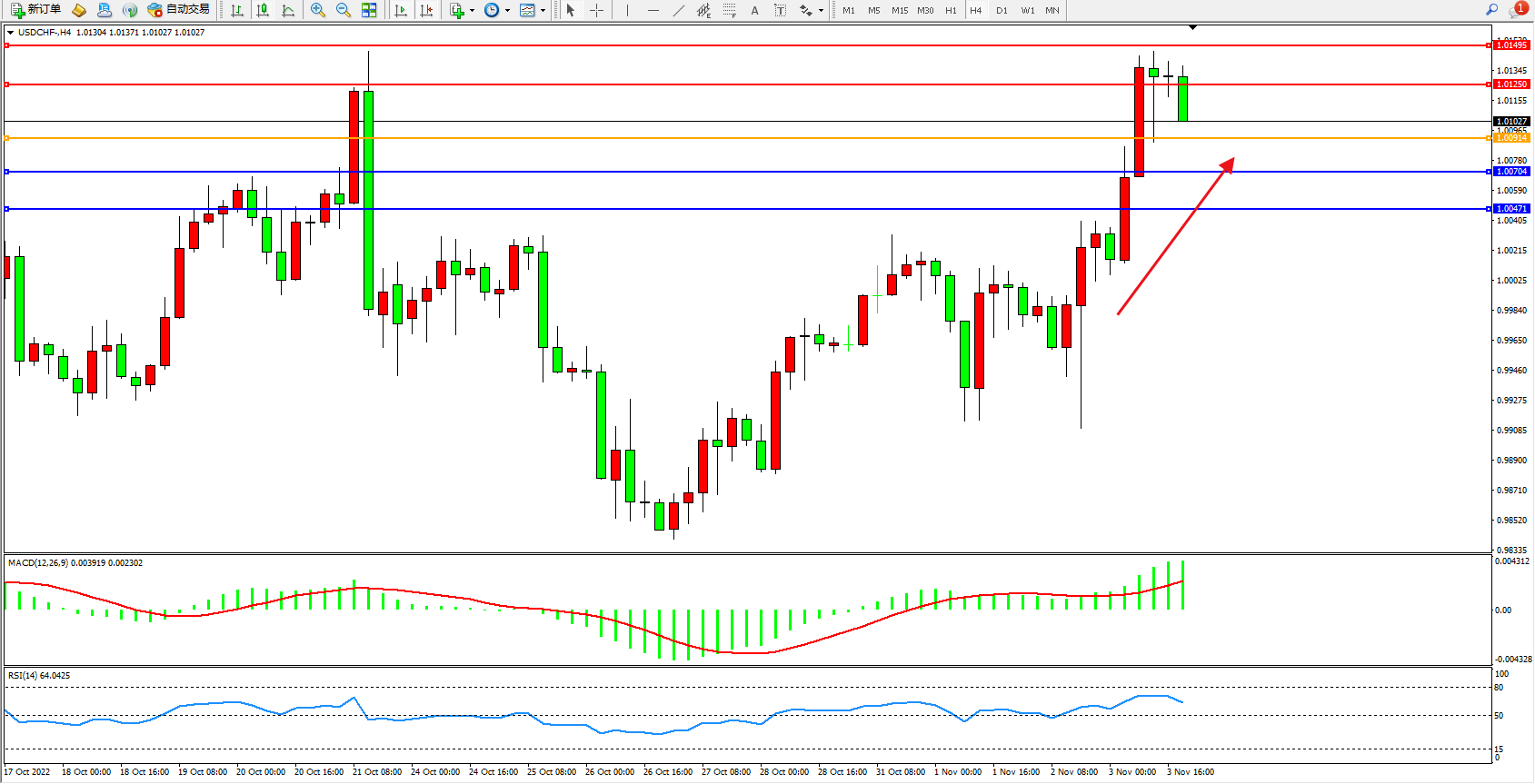 美元兑瑞郎维持1.01027附近震荡,瑞士10月CPI年率与前一个月相比保持稳定。物价方面,10月份瑞士国内的汽油、取暖油和移动通讯的价格有所上涨,服装和鞋类的价格也上涨。相比之下,固定电话和移动通信、燃料和新车的综合报价则有所下降。