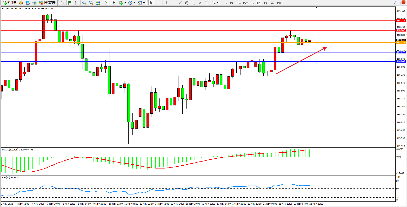 交易策略:167.718上方看涨,目标167.272、166.849