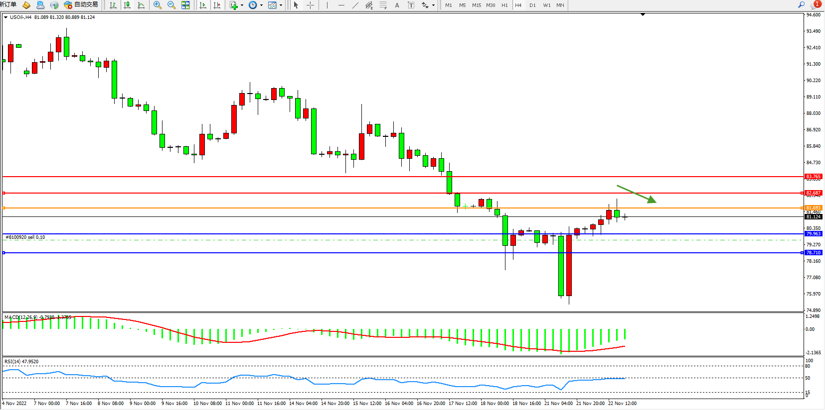 交易策略:81.693下方看跌,目标79.963、78.710