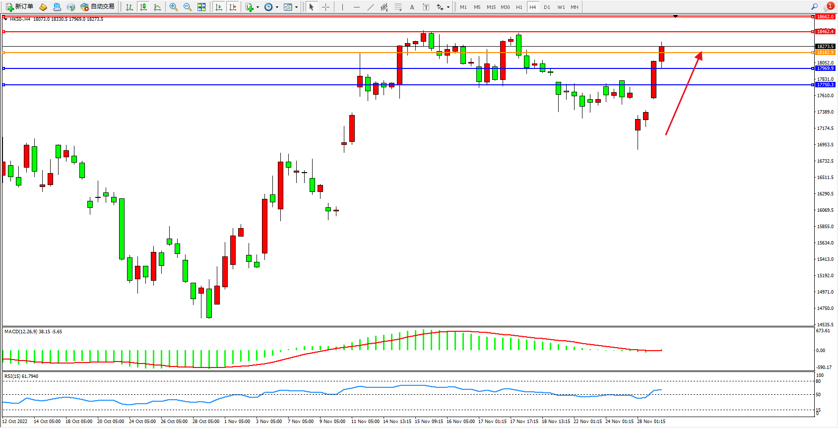 香港恒生指数11月29日(周二)收盘上涨906.74点,涨幅5.24%,报18204.68点;港股三大指数尾盘涨幅进一步加大,收复18000关口,国指涨6.2%,恒生科技指数更是大涨7.66%。大型科技股全线走高,美团涨11.5%,京东涨近11%,阿里巴巴涨超9%,百度、网易、快手、腾讯皆上扬;南下资金全日净流入19.01亿港元,大市成交额放大至1667亿港元。