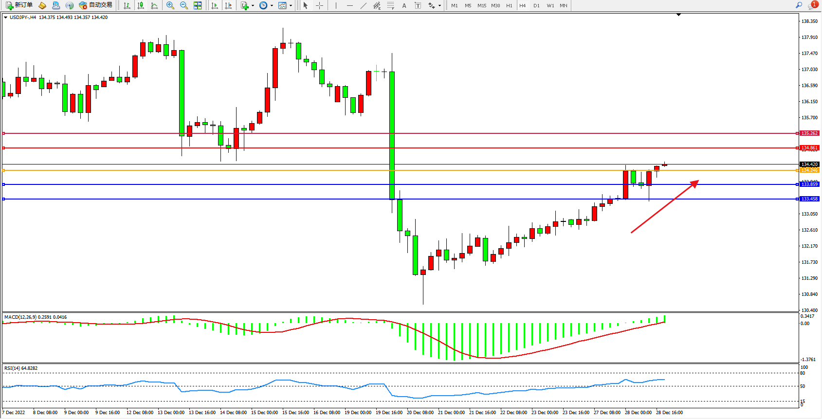 美元兑日圆维持134.420附近震荡,日本经济新闻实施的“日本100名企业家问卷调查”显示,认为世界经济将“恶化”的回答继9月调查之后继续增加,已接近4成。显示景气度的指标(DI)已降至新冠疫情初期以来的新低。