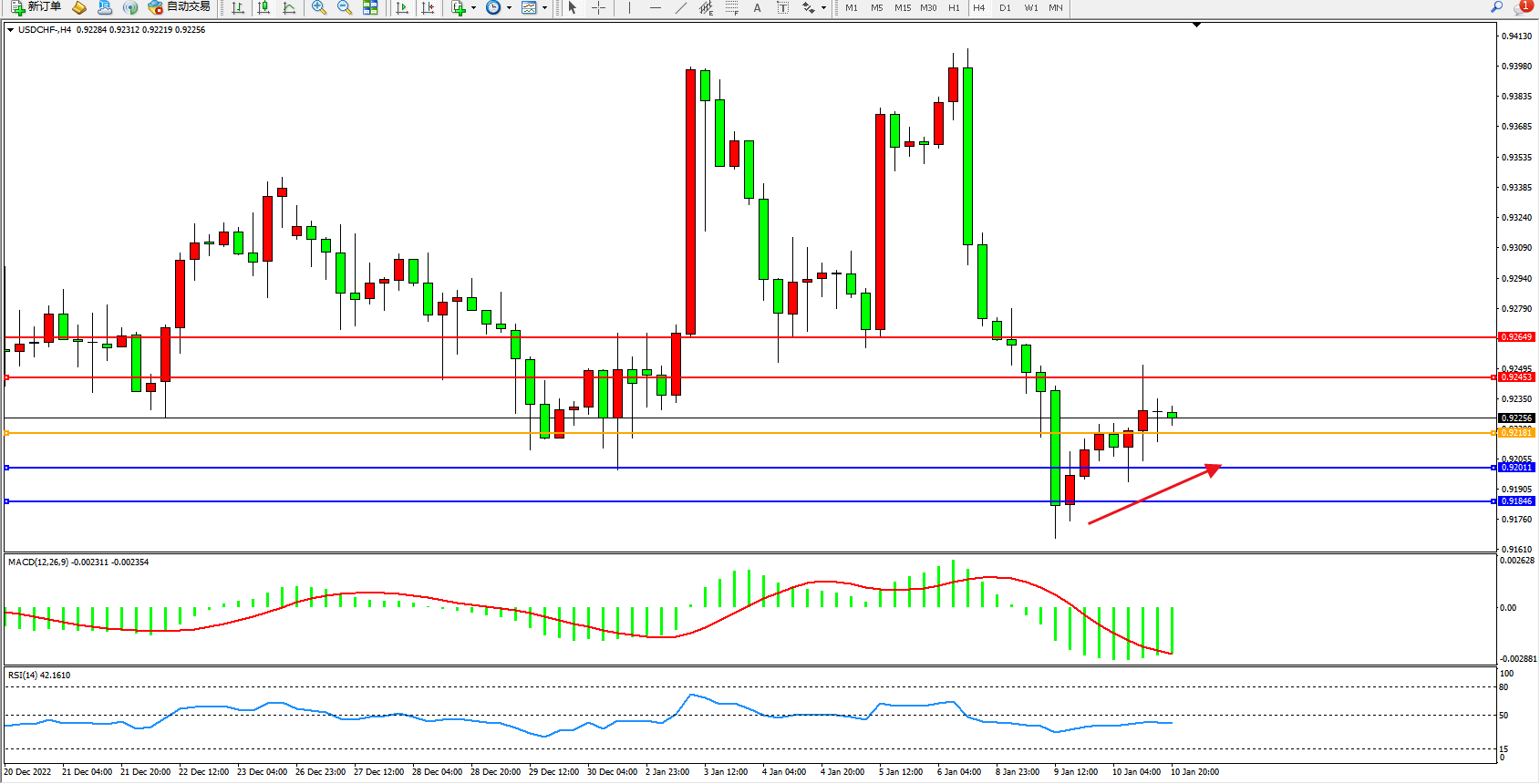 交易策略:0.92181上方看涨,目标0.92453、0.92649