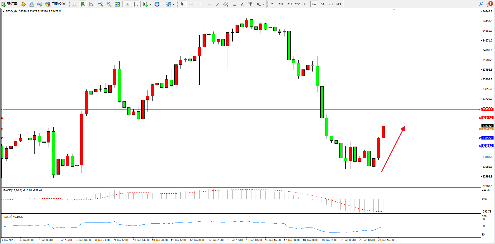 道琼斯指数1月20日(周五)收盘上涨330.93点,涨幅1.00%,报33375.49点;费城联储主席哈克周五在新泽西州银行家领导论坛年会的演讲中重申了支持未来加息25个基点的观点。他表示,“预计今年我们还会加息几次,不过,在我看来,我们一次加息75个基点的日子肯定已经过去了。