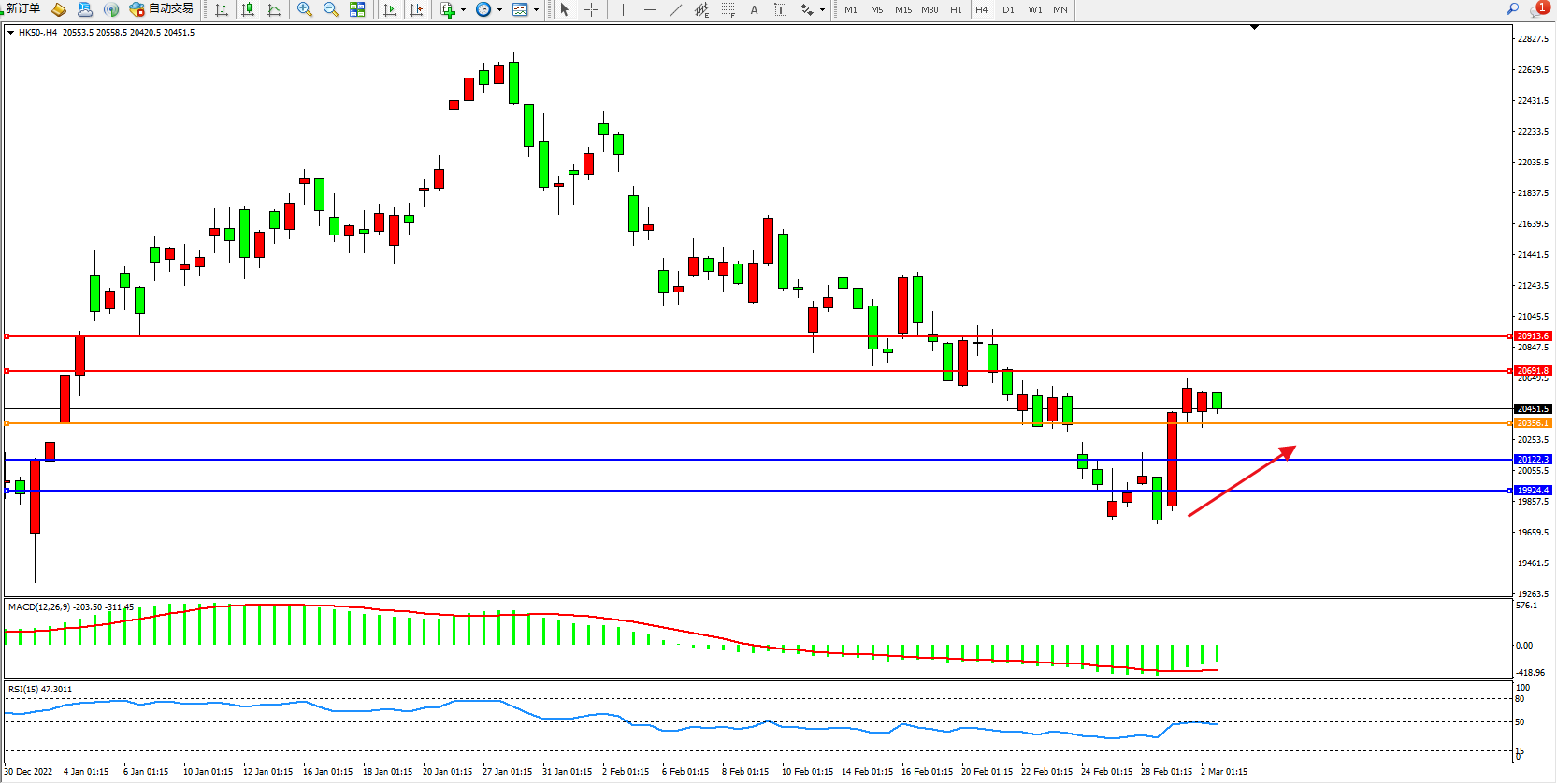 香港恒生指数3月2日(周四)收盘下跌190.25点,跌幅0.92%,报20429.46点;港股三大指数全天维持跌势,未能延续昨日大涨行情,市场做多情绪谨慎。截止收盘,恒指跌0.92%,国指跌0.83%,恒生科技指数跌1.42%。大型科技股集体萎靡,阿里巴巴跌近5%,京东、百度跌超2%,腾讯、美团、快手皆有跌幅;南下资金逆势大幅净流入83.96亿港元,大市成交额为1105亿港元。