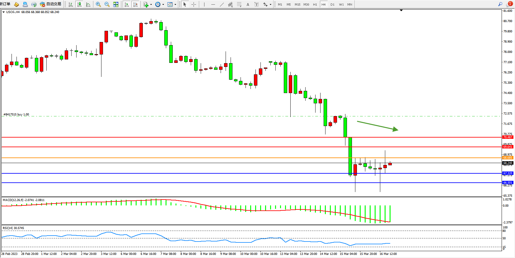 4小时图看:低位窄幅整理,市场空头笼罩,短期低位弱势徘徊,MACD指标处于空头区域低位弱势整理,RSI指标处于空头区域低位弱势徘徊;