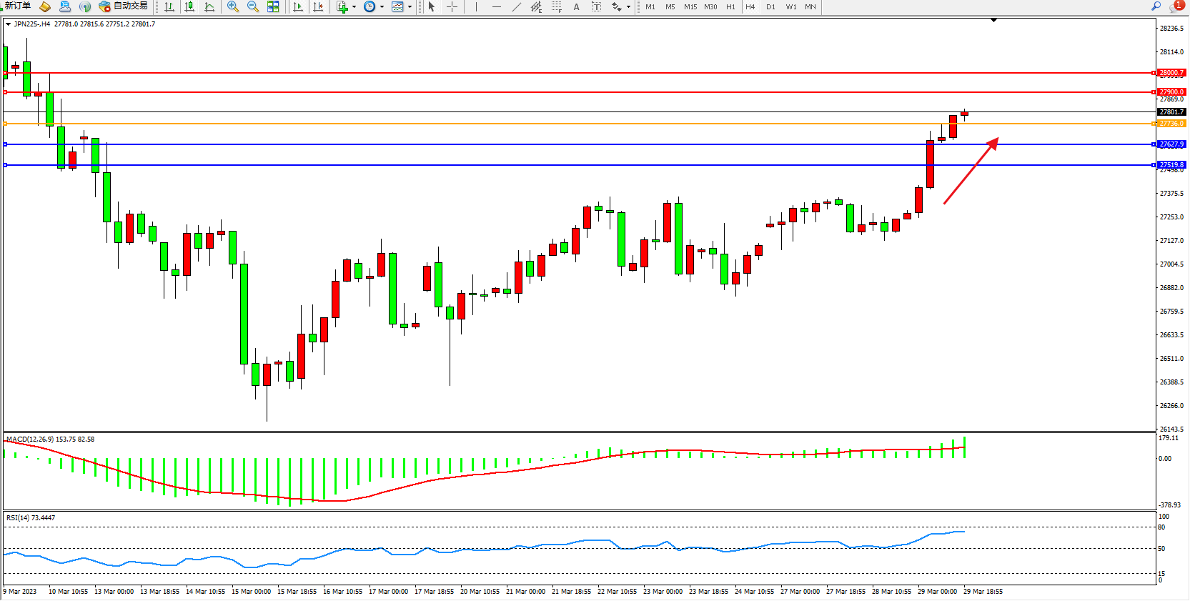 日经225指数3月29日(周三)收盘上涨337.25点,涨幅1.23%,报27855.50点。日本央行副行长内田真一表示,如果经济和物价状况证明逐步取消刺激措施是合理的,那么调整央行的YCC政策将“毫无疑问”成为一种选择。