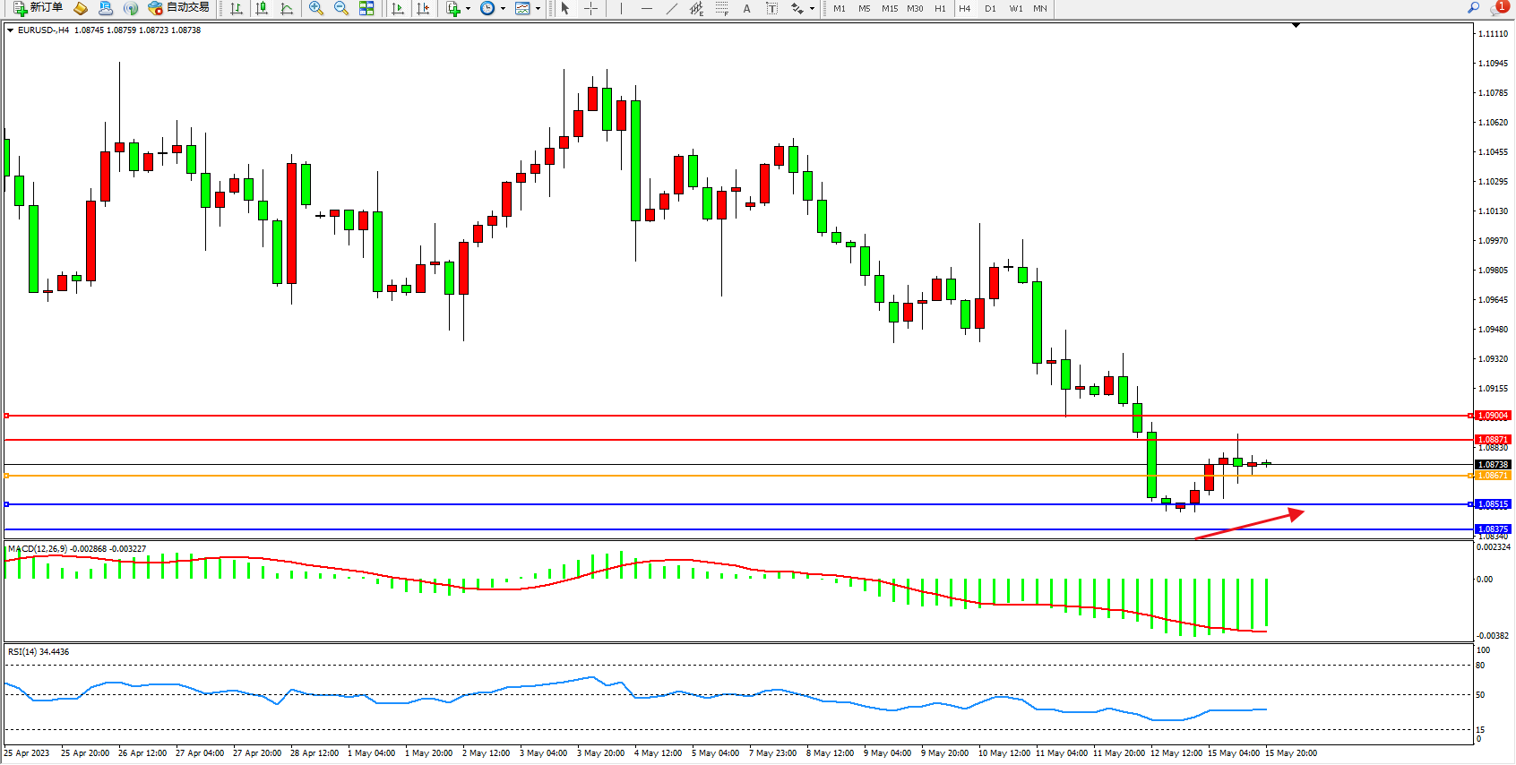 欧元兑美元维持1.08738附近震荡,欧盟委员会:将欧元区2023年通胀预测从5.6%上调至5.8%,将欧元区2024年通胀预测从2.5%上调至2.8%。将欧元区2023年GDP增速预期上调至1.1%,2024年GDP增速预期为1.6%。