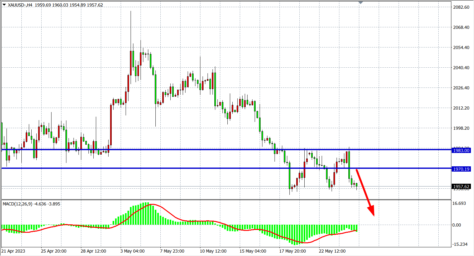 周三(5月24日)随着美元走高,且美联储理事沃勒的鹰派言论和5月会议纪要打击市场对其6月按兵不动的预期,现货黄金较日高下挫近30美元,最终收跌0.88%。展望后市,债务危机谈判再陷入僵局,当前关注的主线仍是美联储6月加息的预期变化,金价短期偏弱势。