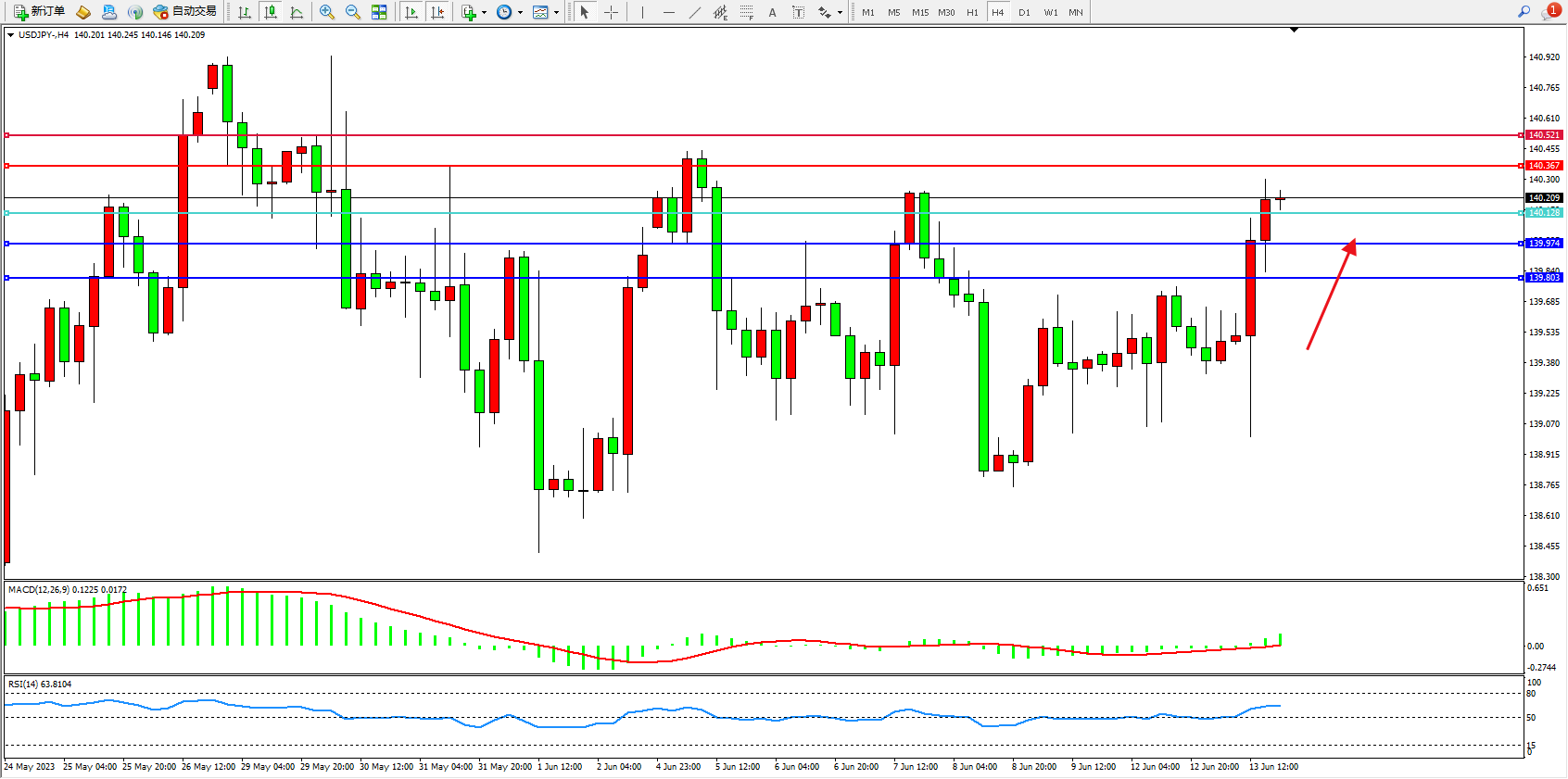 美元兑日圆维持140.128附近震荡,日本央行行长植田和男:实际通胀率达到2%将使物价预期达到2%。日本央行提出自6月14日起,以固定利率无限量购买5-10年期的日本政府债券。