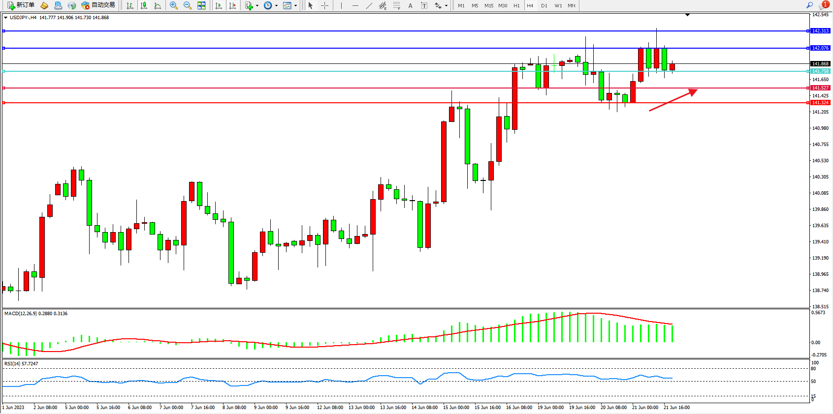 美元兑日圆维持141.868附近震荡,日本央行行长植田和男表示,日本央行将耐心维持宽松货币政策,以稳定、可持续地实现2%的物价目标,同时实现工资增长。