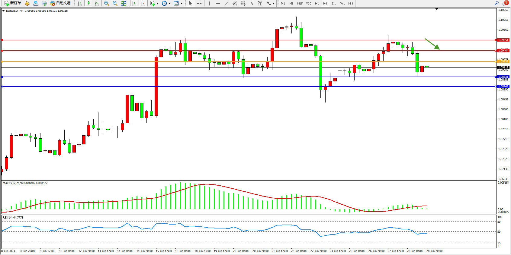 备选策略:1.09232上方看涨,目标1.09444  1.09651