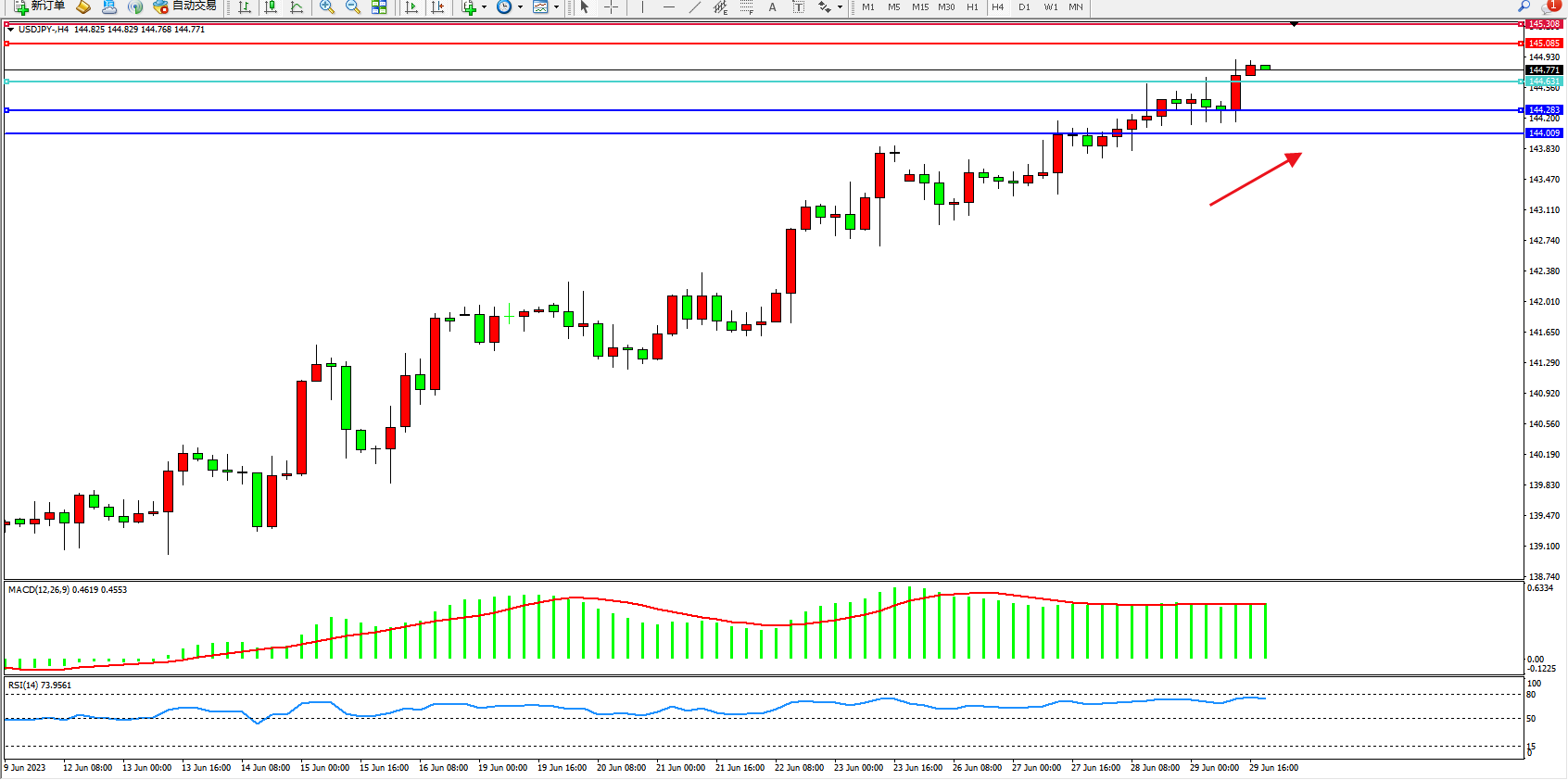 支撑位:144.283  144.009