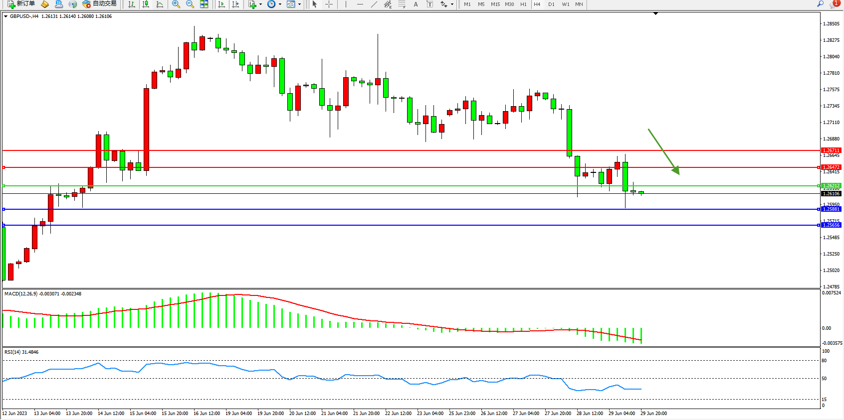 交易策略:1.26212下方看跌,目标1.25881 1.25656