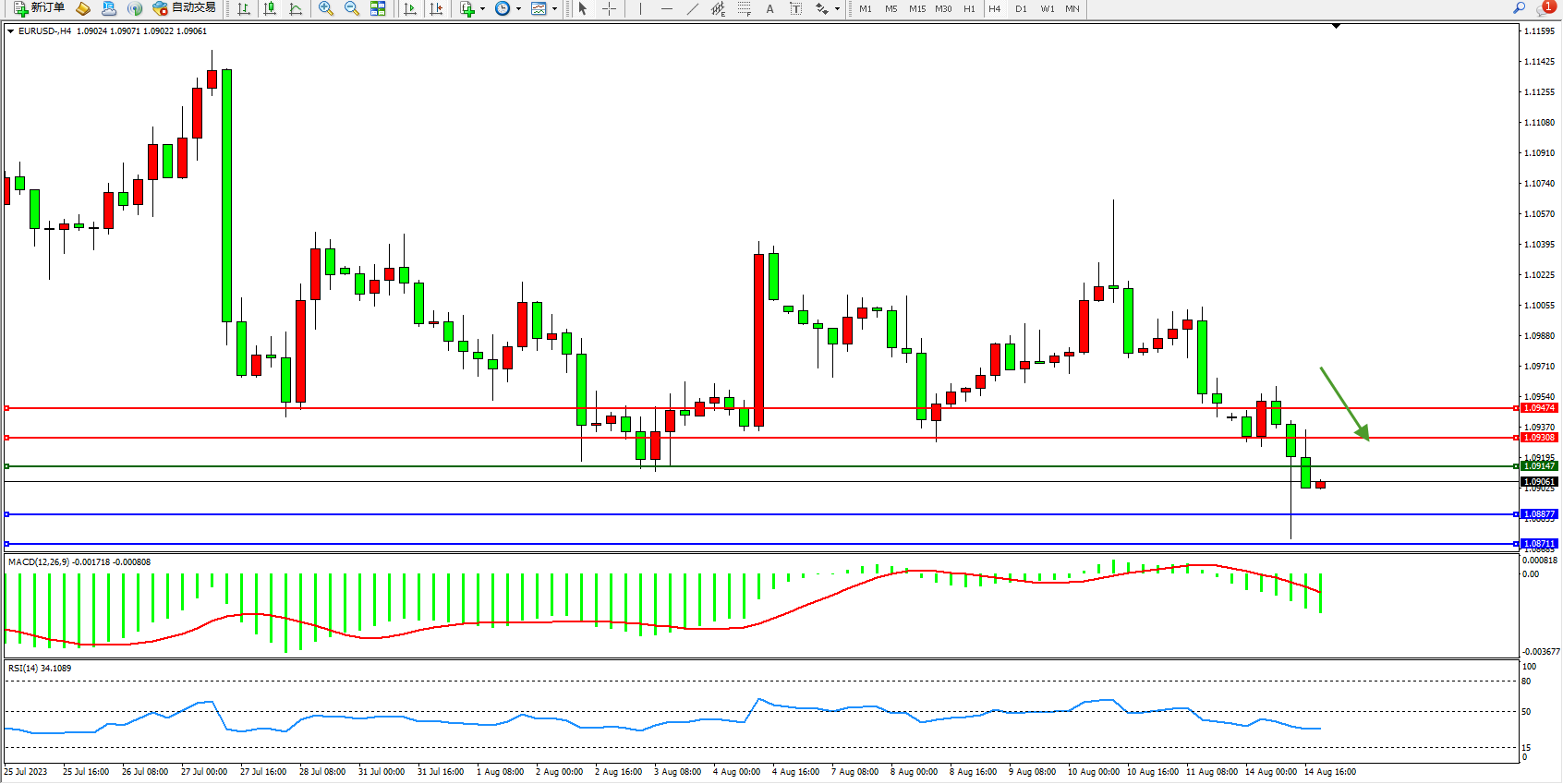 备选策略:1.09147上方看涨,目标1.09308  1.09474