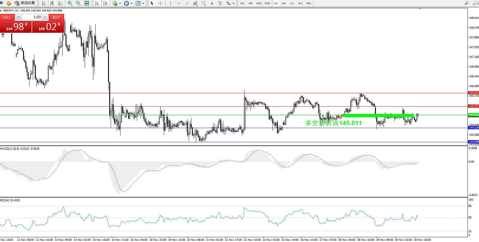 交易策略:在145.011上方看多,目标145.822