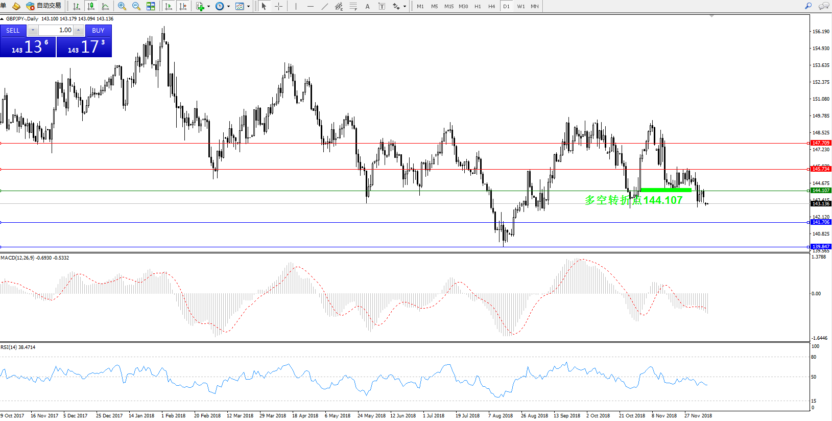 交易策略:144.107上方看涨,目标145.734147.709