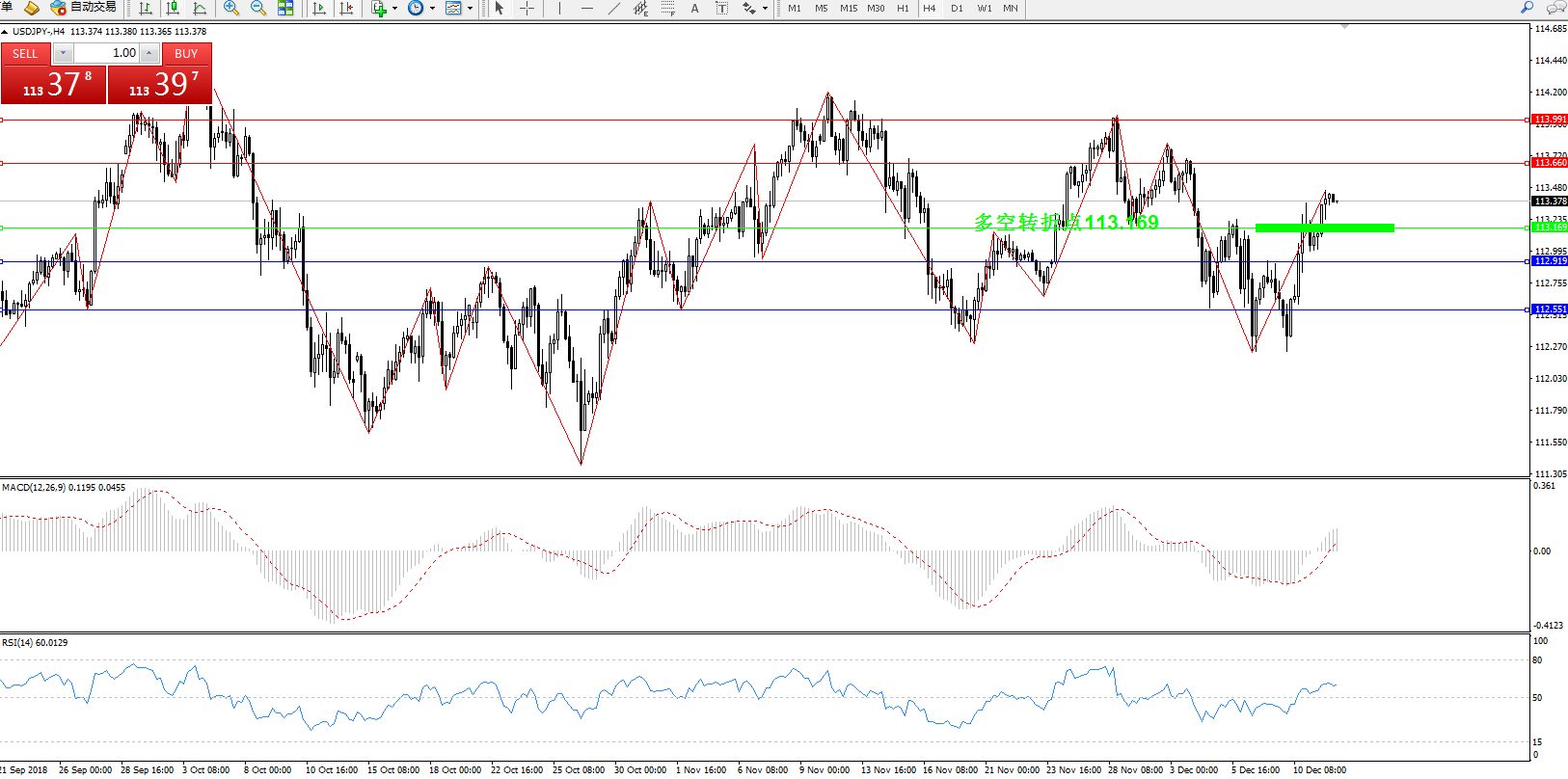交易策略:113.169上方看涨,目标113.660、113.991