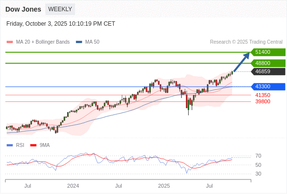 Dow Jones 中期: 上升趋势。