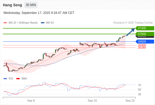在 26600 之上,看涨,目标价位为 27000 ,然后为 27300 。