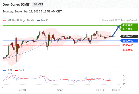 在 46500.00 之上,看涨,目标价位为 46750.00 ,然后为 46830.00 。