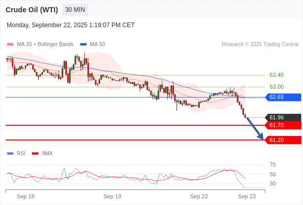 在 62.65 之下,看跌,目标价位为 61.70 ,然后为 61.20 。