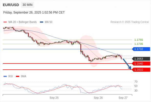 在 1.1710 之下,看跌,目标价位为 1.1640 ,然后为 1.1610 。