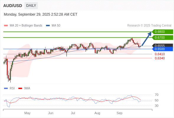 在 0.6500 之上,看涨,目标价位为 0.6700 ,然后为 0.6800 。