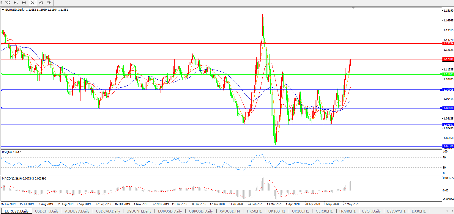 交易策略:1.1100上方看涨,目标1.1200、1.1300