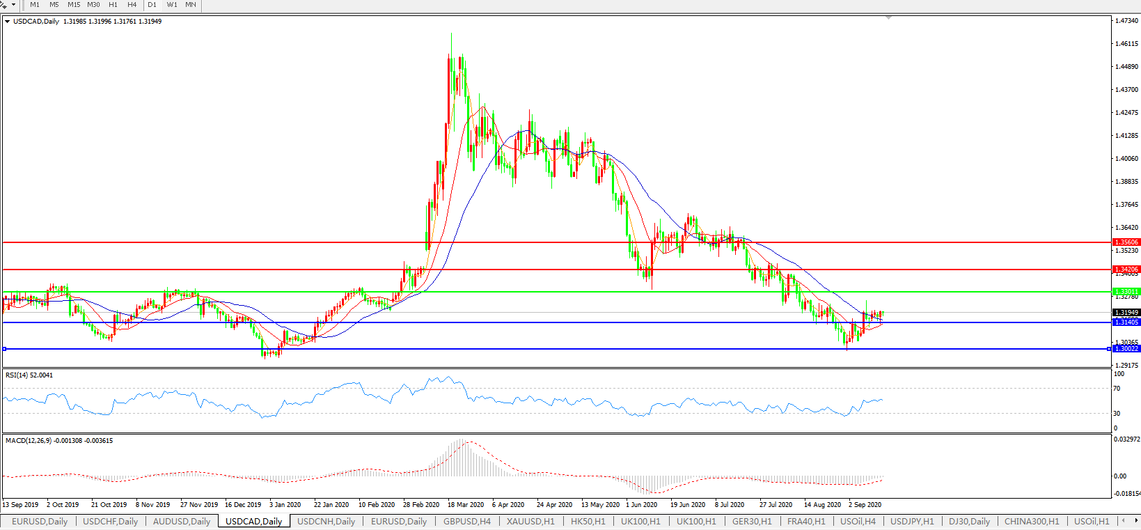 美元兑加元USDCAD    日线图: