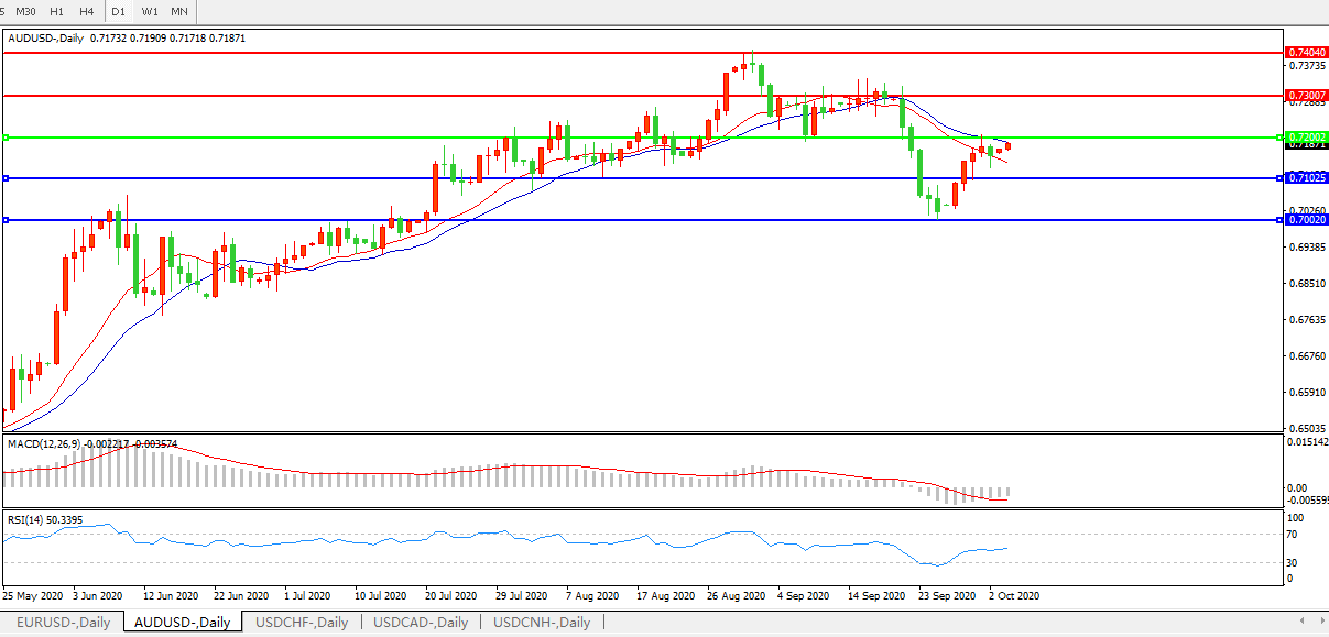 备选策略:0.7200上方看涨,目标0.7300、0.7400