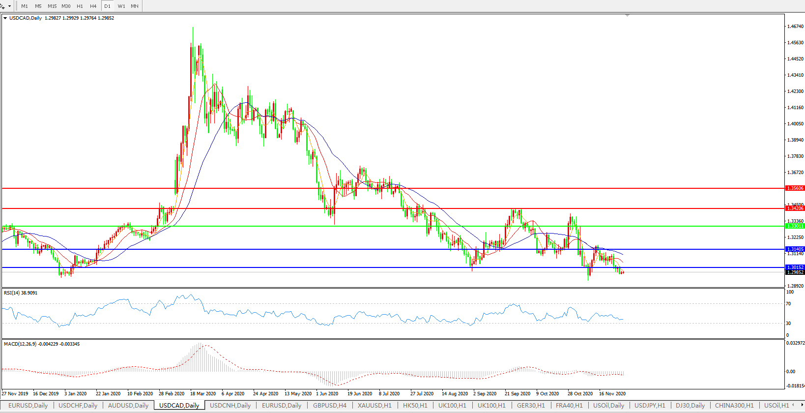 美元兑加元USDCAD 日线图: