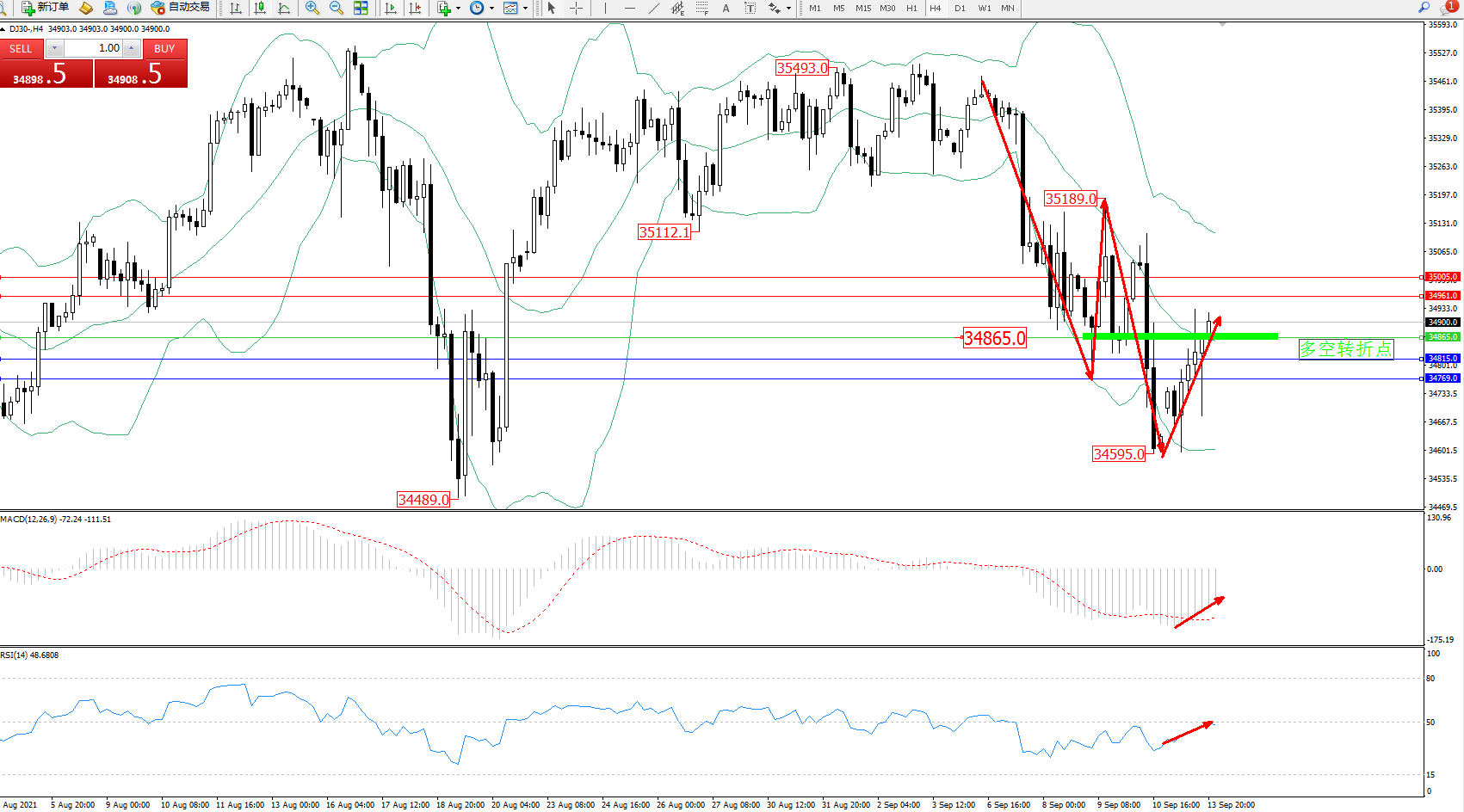 技术点评:空头动力延续布林带指标通道中下轨区间呈宽幅震荡向下移动,低位抵达34595位置后得到支撑开始巨震向上回升,突破布林带指标中轨附近节点后有继续向上移动态势,布林带指标呈下行趋势走势后开始有收口平移迹象,MACD指标处于空头区域低位震荡后开始缓慢上移,RSI指标处于空头区域持续震荡后缓慢回升至50均衡线附近徘徊;