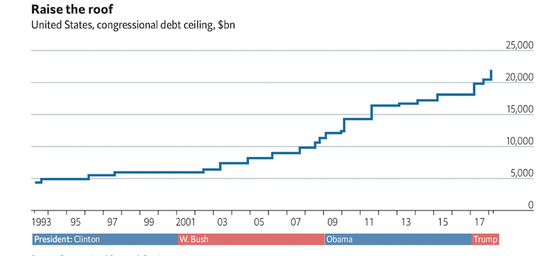 不过,如开头所述,历史上,是否要提高债务上限这个问题,从来没有出现过否定答案。多年来,提高或调整债务上限已经成了美国国会的一项例行公事。自1960年以来,国会共提高或调整债务限额78次。其中,共和党总统执政时49次,民主党人入主白宫时29次。仅特朗普政府时期,国会就三次提高了上限。