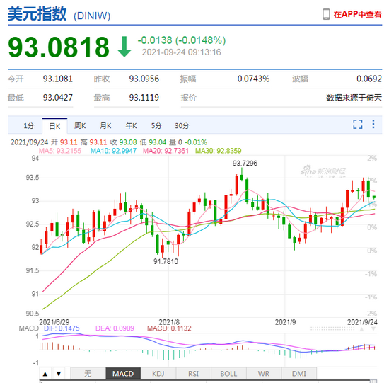 美元指数(93.0887, -0.0069, -0.01%)转跌