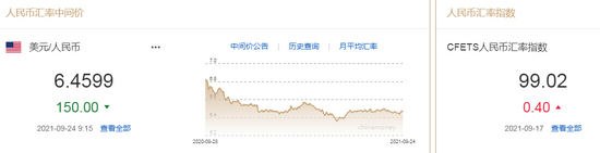 9月24日,人民币(6.4585, -0.0004, -0.01%)中间价报6.4599,上调150点,上一交易日中间价报6.4749,在岸人民币上一交易日收报6.4594。