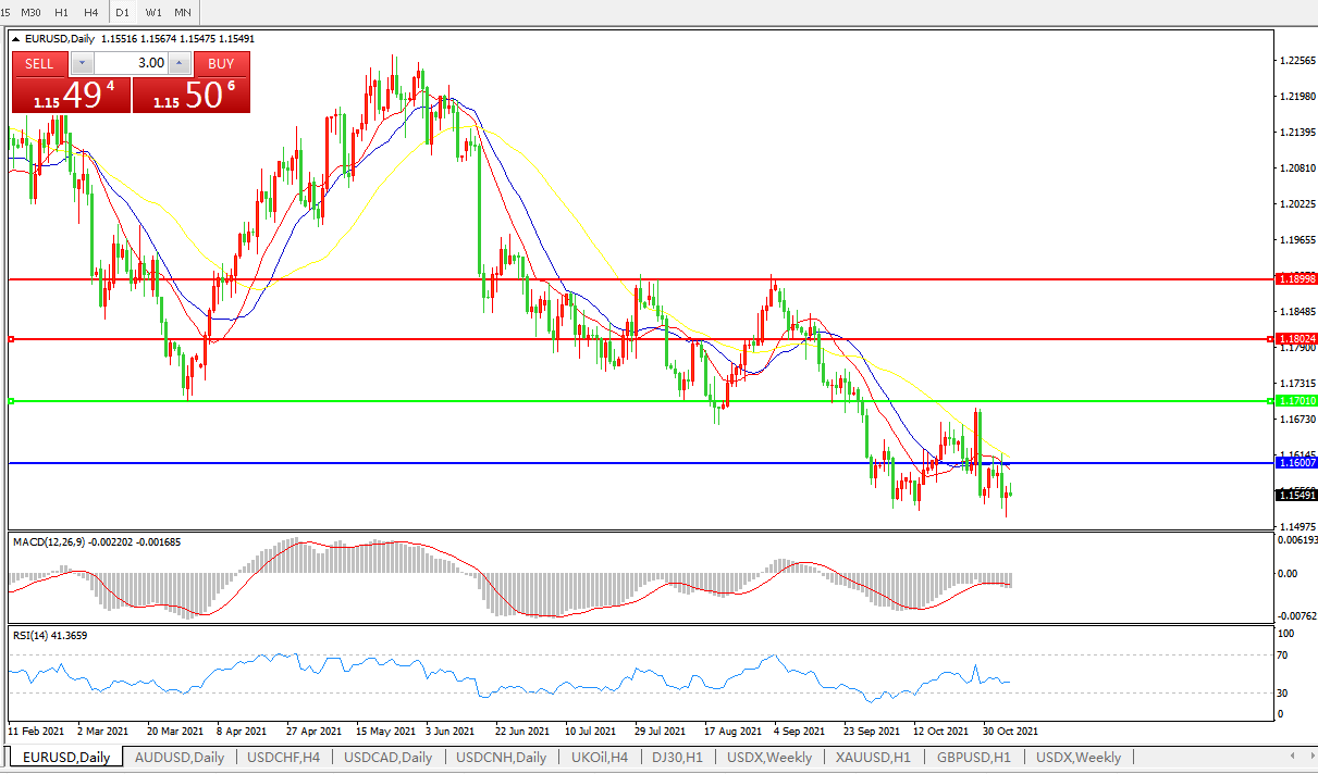 技术面简析:日图均线再度呈空头排列,汇价继续弱势下行,MACD运行于0轴下且量能稍微放量,RSI快速回落 ,预计短期汇价大概率将进一步下行。
