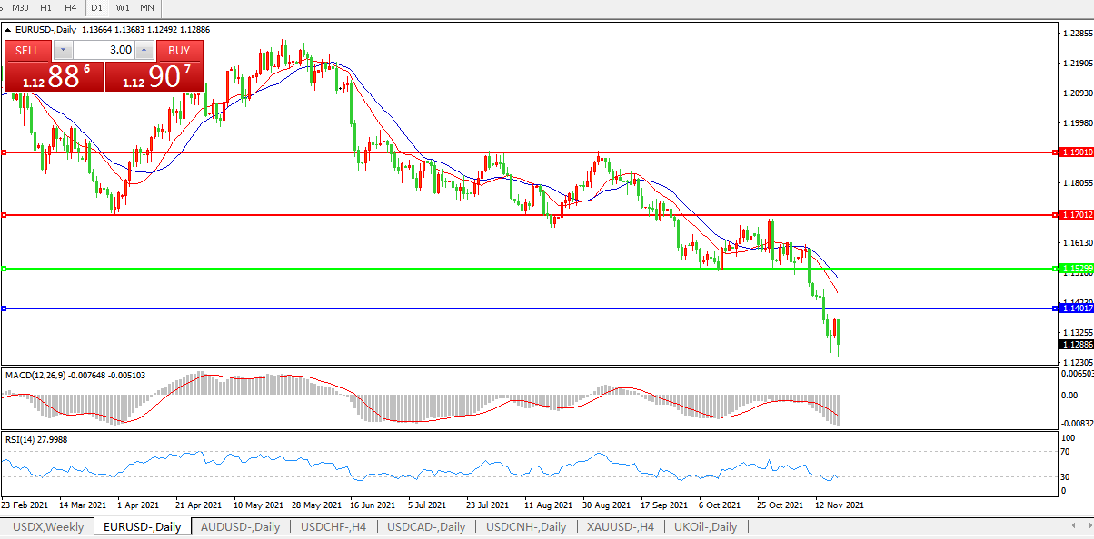技术面简析:日图均线再度呈空头排列,汇价小幅反弹后暴跌,MACD运行于0轴下且量能稍微放量,RSI快速回落 ,预计短期汇价大概率将进一步下行。