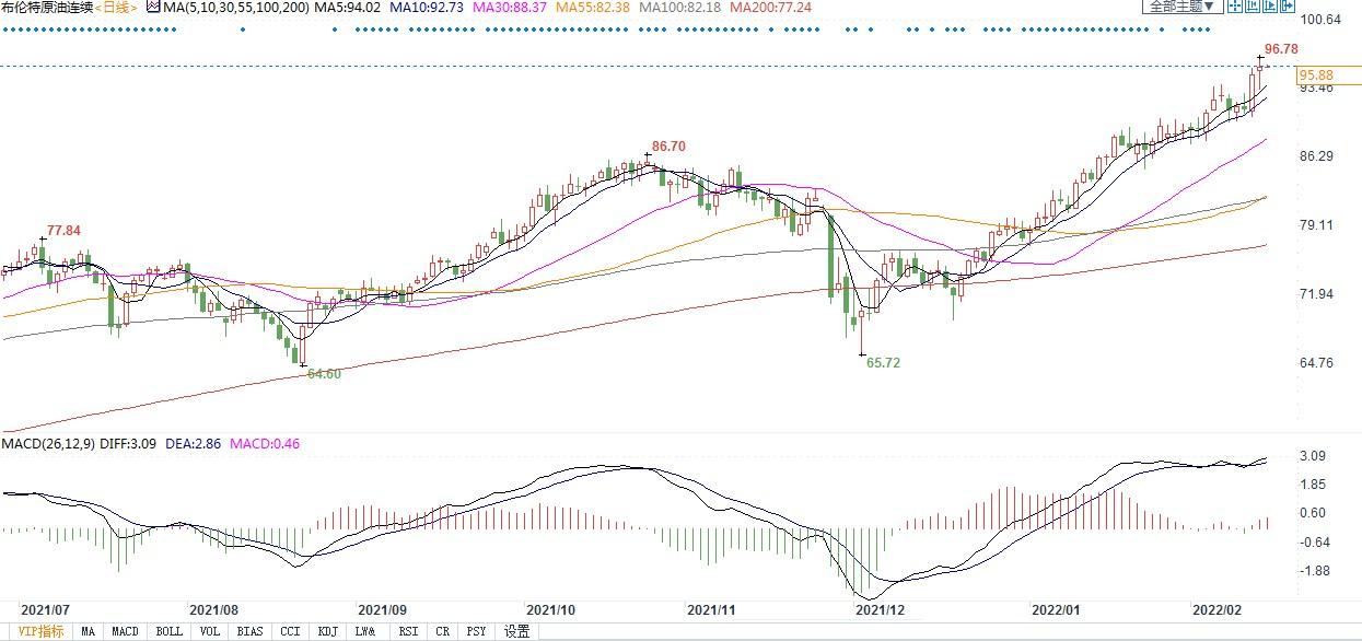 北京时间2月15日9:36,布伦特原油主力合约价格报95.98美元/桶。