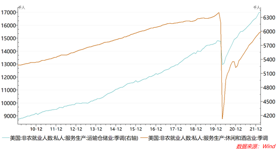 预计年内失业率将呈现走低反弹的态势,低点约在3.2-3.3%。随着美国后疫情逐渐开放,休闲酒店和教育保健还是复苏的主要动能。