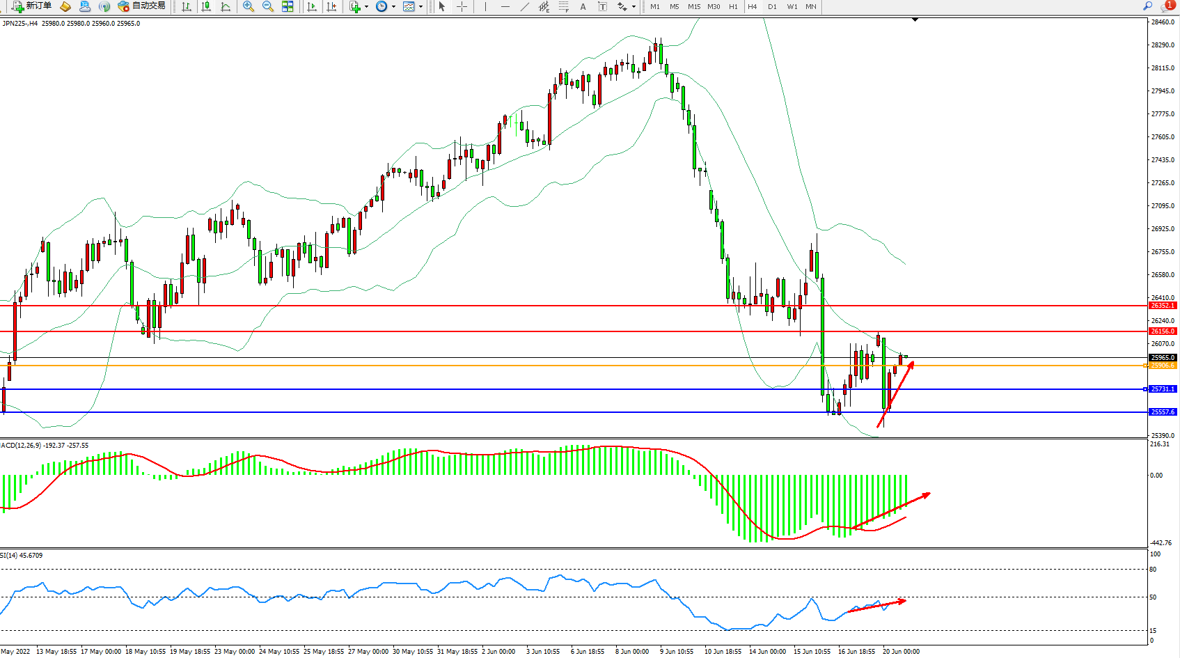 日经指数JPN225——4小时K线图显示: