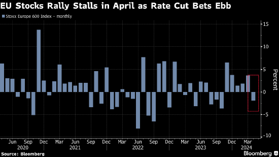 欧洲股市周四下跌,美联储官员的鹰派言论打压了早前对欧洲央行降息前景的乐观情绪。
