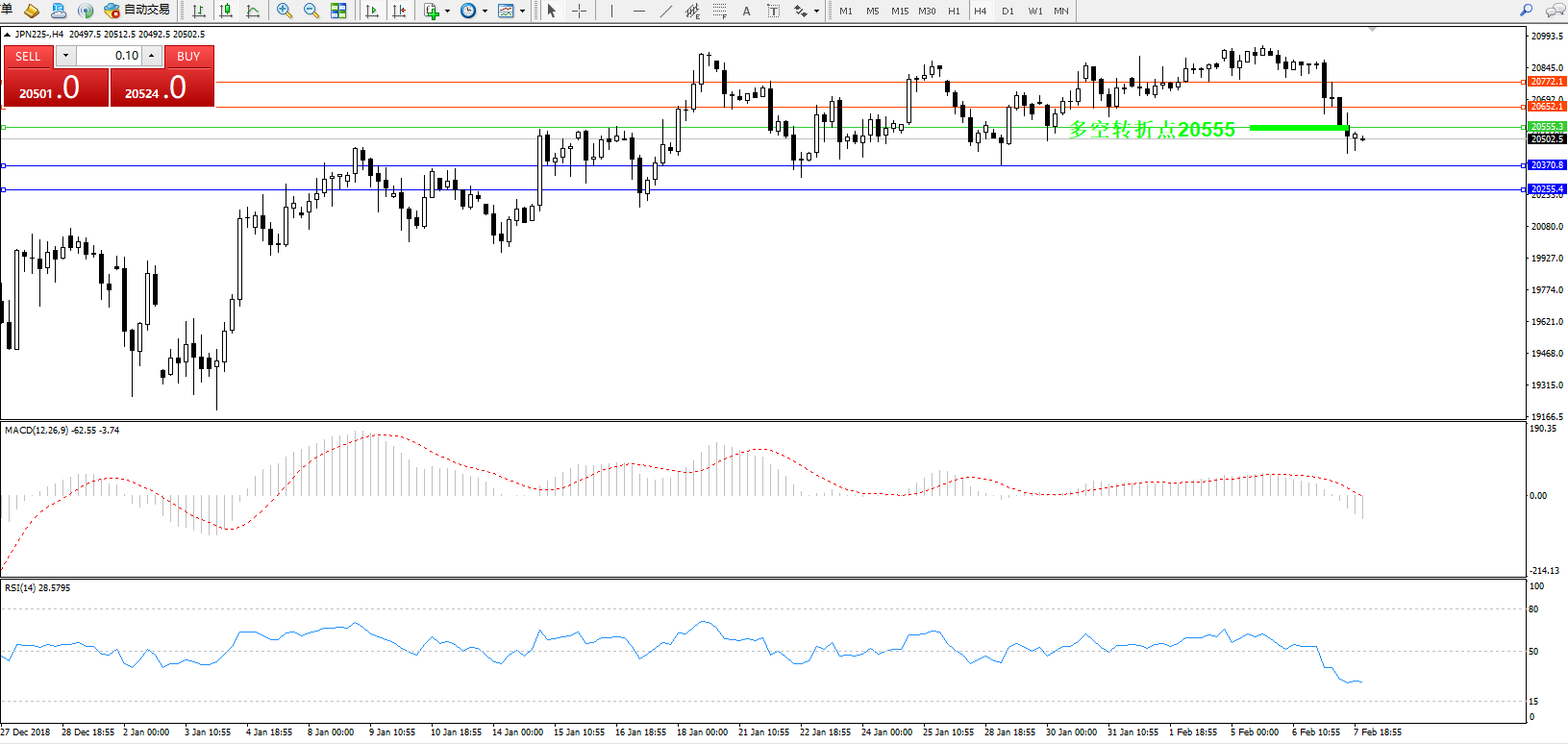 交易策略:20555下方看跌,目标20370、20255